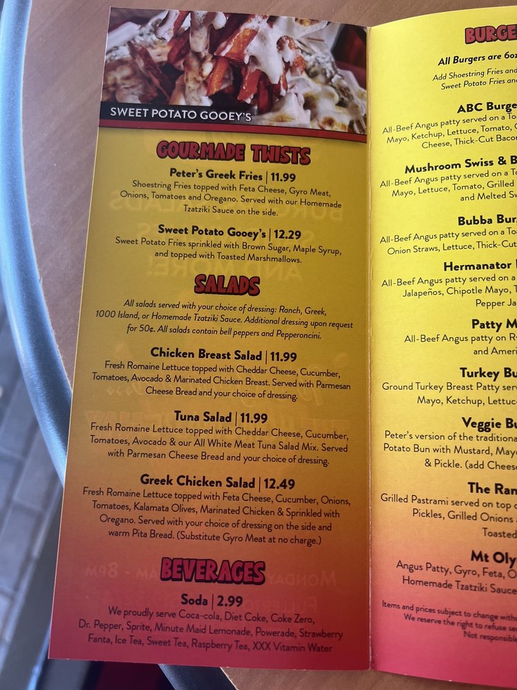 Introducing the menu at Peters Gourmade Burgers in Fullerton, CA, where you can indulge in a delectable selection of burgers, salads, and sandwiches. This Latinx-owned restaurant offers a casual and trendy dining experience with options for takeout, delivery, and reservations. Noteworthy features include vegan options, wheelchair accessibility, and outdoor seating, making it an ideal spot for groups and families. Customers rave about the flavorful turkey burgers, pastrami sandwiches, and the famous Hermanator burger. The shoestring fries and sweet potato fries are a must-try, perfectly crispy and seasoned. The service is top-notch, with friendly staff ensuring a pleasant dining experience. Don't miss out on the unique dishes and vibrant atmosphere at Peters Gourmade Burgers.